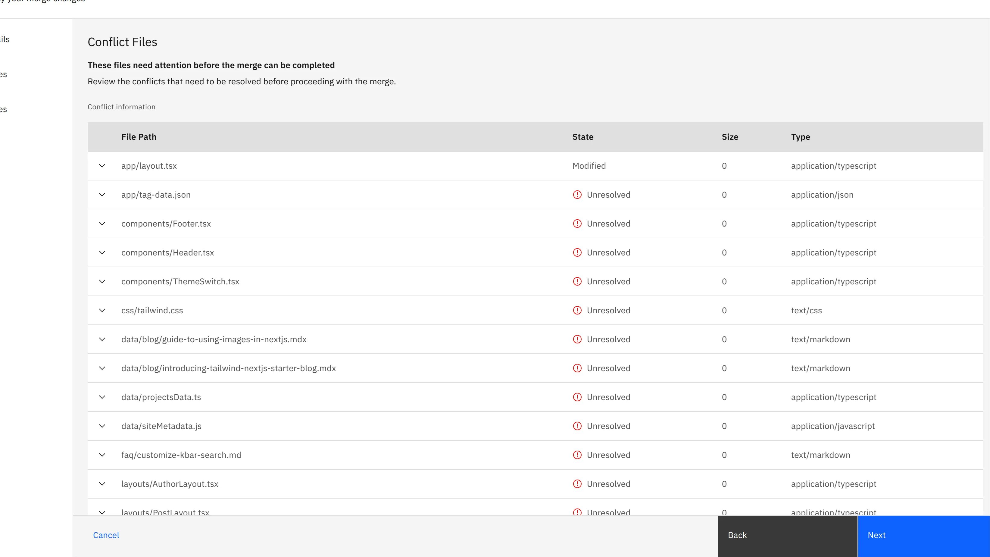 When Git detects a conflict during a merge, it means changes in your current branch and the branch you're merging overlap in a way Git can't automatically resolve. Instead of pulling the changes locally and resolving them in your development environment, you can handle this directly in code input's web interface.